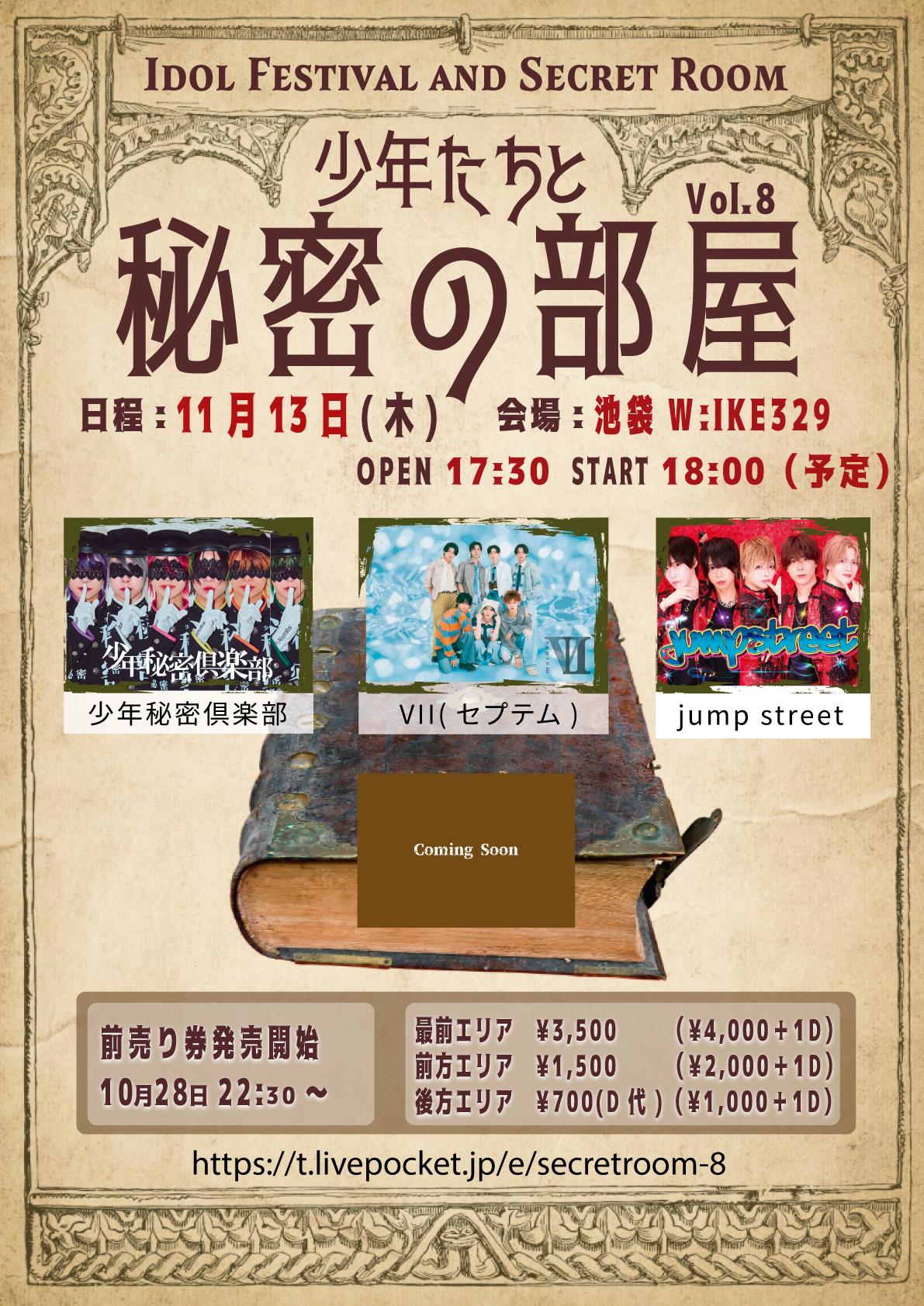 【前売券】最前チケット : 3,500円 / 前方エリア : 1,500円